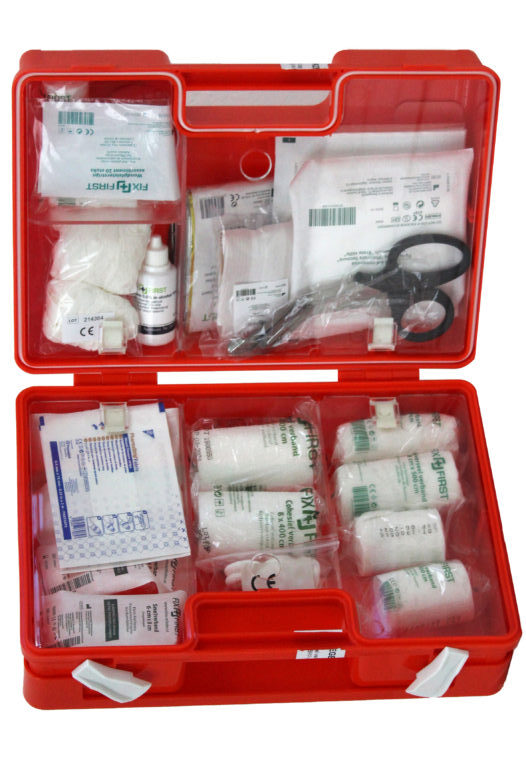 Het is een feit dat een EHBO-verbandtrommel (ofwel -koffer) erg belangrijk is in situaties waarbij letsels kunnen ontstaan. Hierin vind je een standaard uitrusting om de standaard wonden te kunnen behandelen. Denk hierbij aan pleisters, gaasjes en verbanden. Een verbandtrommel op het werk is verplicht. Maar wat voor verbandtrommel heb je nodig? Elke verbandtrommel heeft gemeenschappelijke producten, maar bij iedere situatie kunnen andere aspecten een rol spelen. Zo is het belangrijk te kijken naar de toepassing, zodat je de EHBO-verbandtrommel kan indelen naar de verwachte situaties. Daarnaast speelt de grootte van het bedrijf of de instelling (het aantal werknemers en bezoekers die dagelijks maximaal aanwezig zijn in het pand) een belangrijke rol bij de keuze.